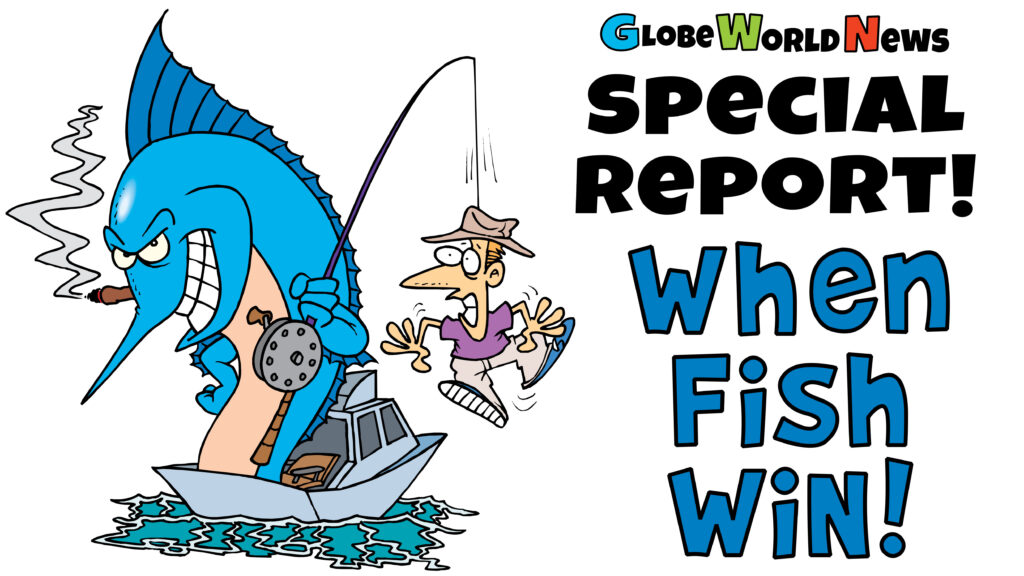 Keywords: fish war, fishing revenge, angry fish, fishing fails, fish fight back, aquatic uprising, fishing humor, man vs fish, fishing parody, satirical news, Globe World News, special report, comedy news, fishing comedy
